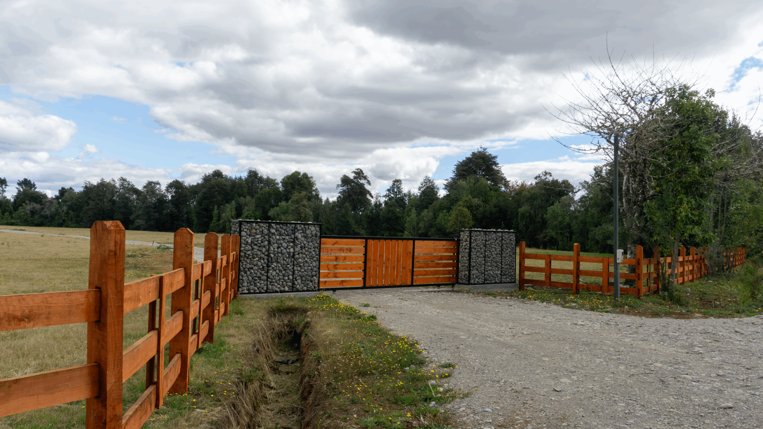 Camino de servidumbre y portón de acceso central para mayor seguridad.